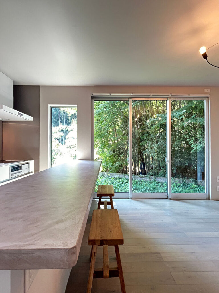 窓の外に見える緑や差し込む光など